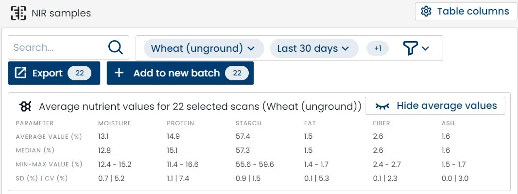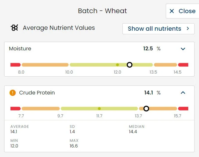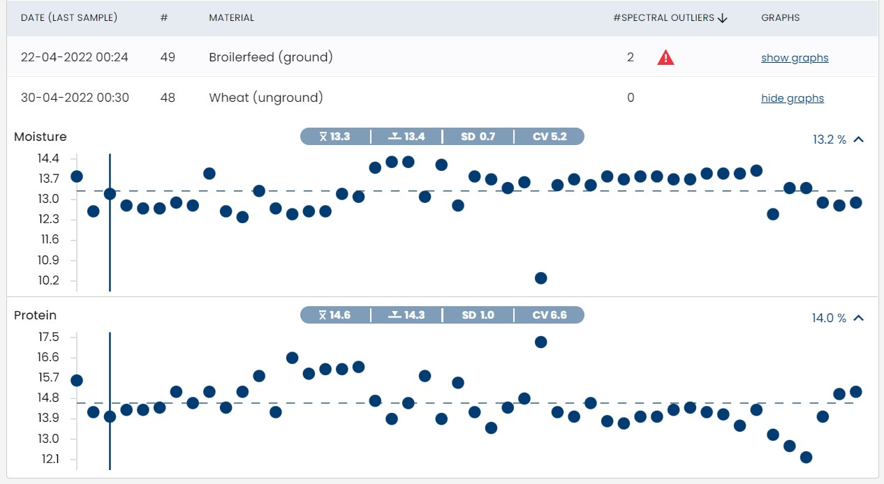通过控制面板,您可以持续追踪原料与成品饲料的质量动态趋势,从而更精准地掌控资源分配,灵活调整策略以应对市场需求,同时有效控制成本。
